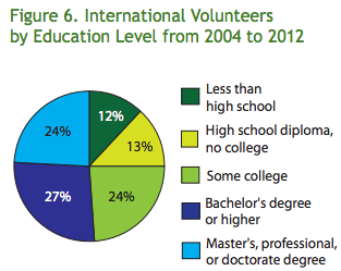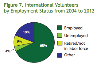 In other words, roughly 80% of international volunteers, or 1.28Million, are conducting mostly manual tasks that can also be completed by residents from the host country. Meanwhile, the remaining .32M are doing "high professional" skills-based work. Considering that the vast majority of these volunteers are college educated and employed, we hope to see this statistic flip in the coming decade.