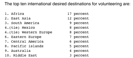 In 2008, a survey of 1,400 professional by the UC San Diego's Center for Global Volunteer Service found that