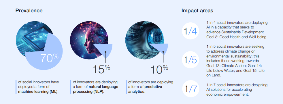 The report maps the current landscape of AI in social innovation -- its prevalence, opportunities and challenges -- drawing on a dataset of 300 social innovators and 90 AI initiatives around the world. Find a breakdown of key takeaways from the full 36-page report in our summary below: