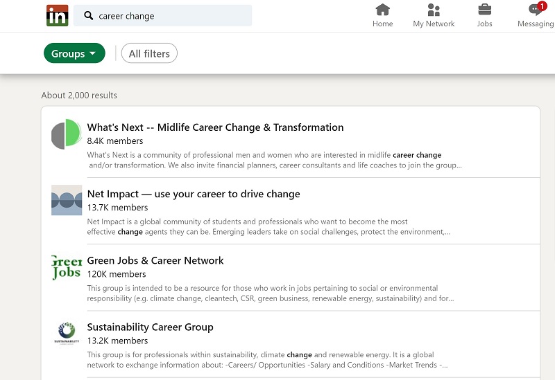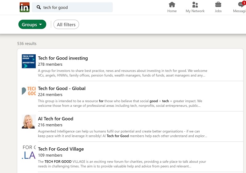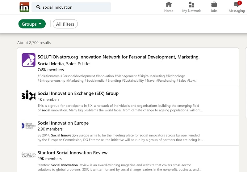 When it comes to finding relevant groups, it’s all about keywords. Try searching different combinations of keywords on LinkedIn and filtering for groups to see what comes up. Here are a few examples: