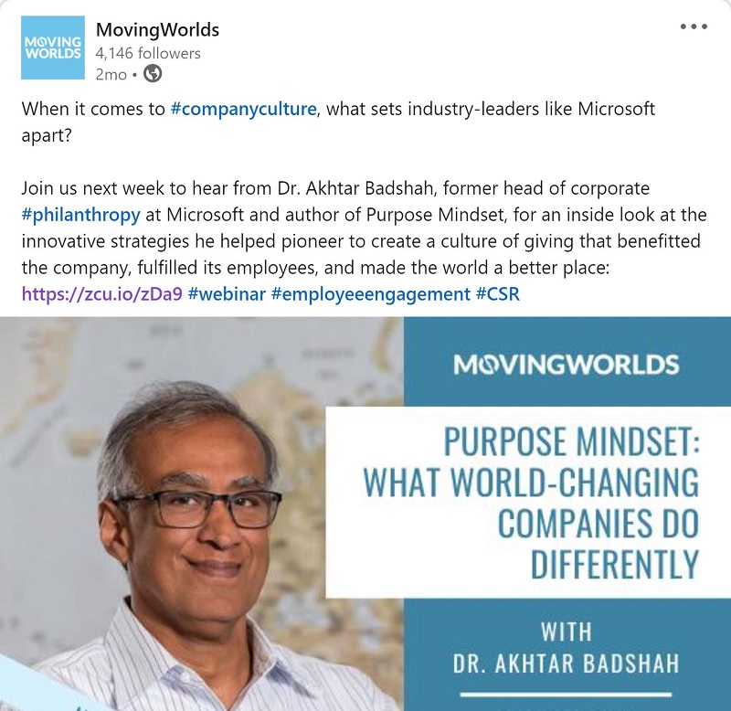 Need more help expanding your network? Join our community of professionals from around the world that are focused on using their careers to make the world better by applying to the MovingWorlds Institute.