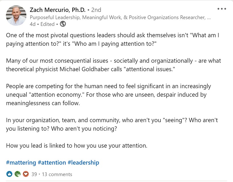 Allocate some of that 1-hour per week to scrolling through your LinkedIn feed to identify opportunities to proactively add value. A helpful framework to think about whether your comment, post, or re-share would add value is to ask yourself: 1. Is this useful? 2. Is it something others will benefit from? 3. Is it something I can speak about with authority through direct experience?