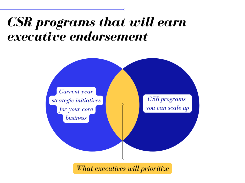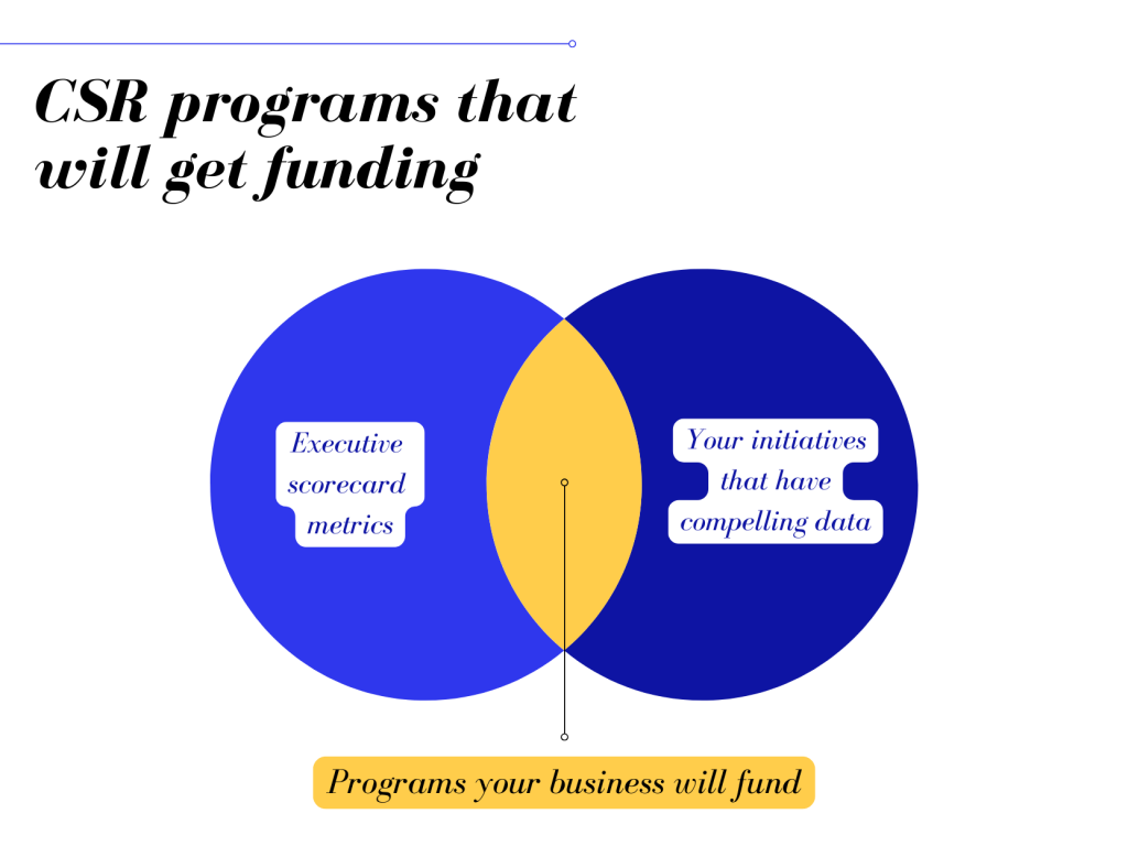 Your CSR initiatives will get more visibility – and funding – if they are seen as supportive of the company’s long-term strategy AND these short-term initiatives.