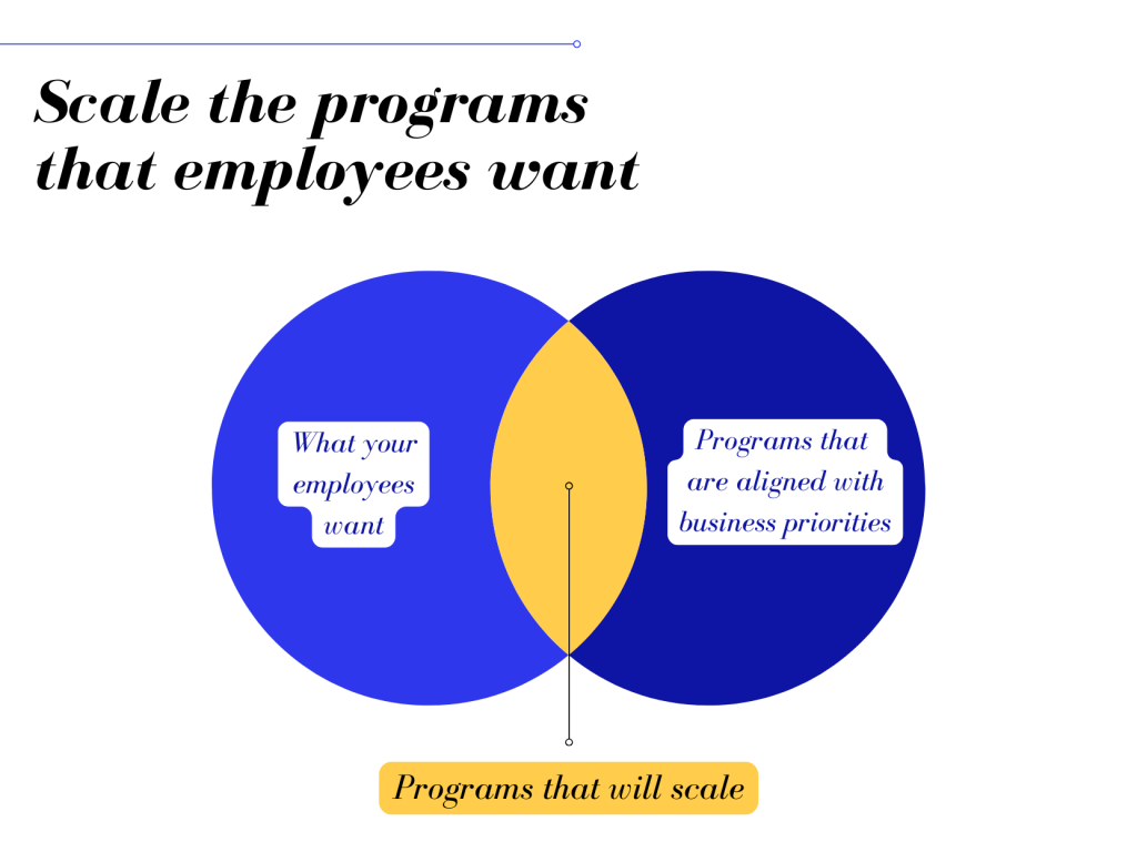 Once you have the proposal for the right programs that align with long-term strategy and short-term initiatives, you’ll need to strengthen your case. There is a plethora of data out there, so find the data points that will appeal to your executives and help tell the story of how your programs are good for society AND the business.