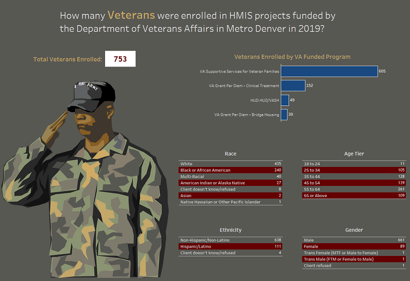That need informed the goals of the Mission Project, which included “learning how to isolate specific segments of the community [they] served (like Veterans experiencing homelessness), being able to measure and communicate the impact of [their] services, and being able to quickly and easily share data with partners through community-facing dashboards in Tableau Server to improve [their] homeless crisis response system.”