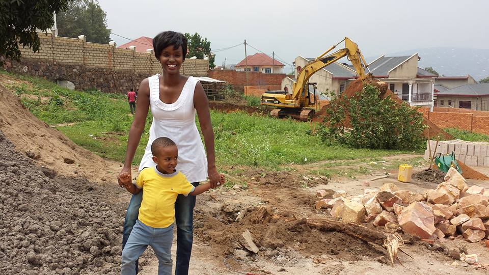 Alpha Akariza, the founder of Discovery Preschool, a new preschool in the Kigali neighborhood of Gisozi, visits the school construction site with her son.[/caption]