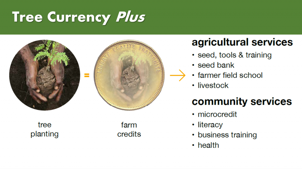 Using this model still gave trees monetary value, like the original cash model proposed. What makes this model sustainable is that rather than paying the farmers in cash, the farmers were paid in training and tools to help them improve the productivity of their farms.