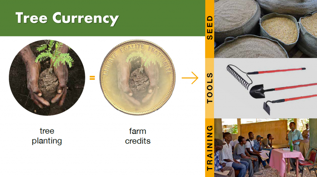 The evolution of this program demonstrates how a project can grow in scope without losing its core focus: the expanded offerings were still based on inputs earned from planting trees. As a result of this program, over 7 million trees have been planted in Haiti, and farmers who planted them and their families have higher incomes, access to education, and new opportunities for the future.