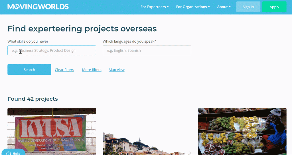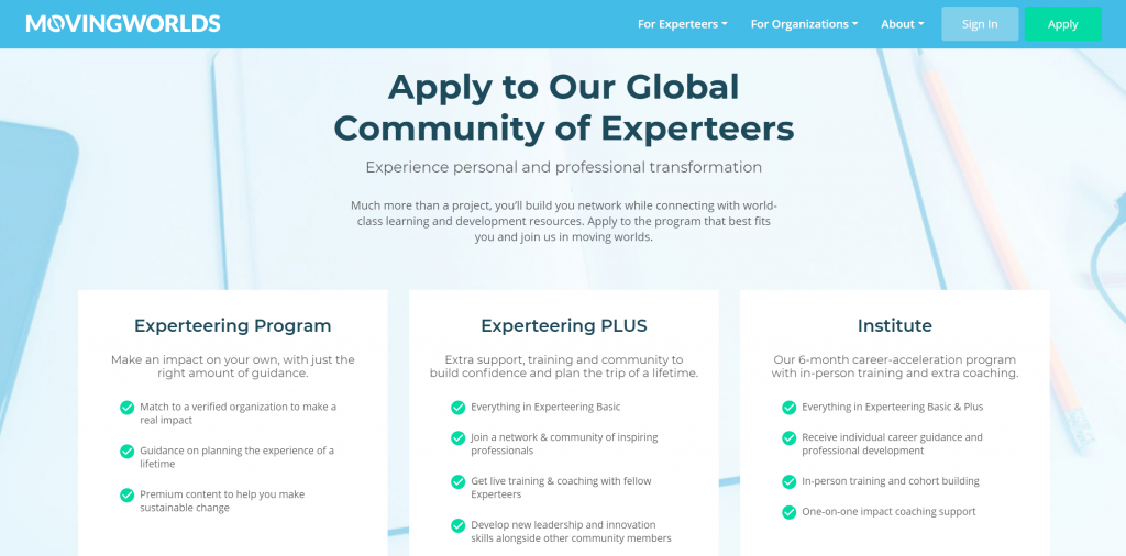 If you're thinking about going Experteering, there has never been a better time. Not only are there a wide array for current projects currently open, but our enhanced programs mean you'll have the guidance, resources, and peer-based support to gain the confidence, know-how, and insights to have a truly life-transformative experience - apply here to become a MovingWorlds Experteer!