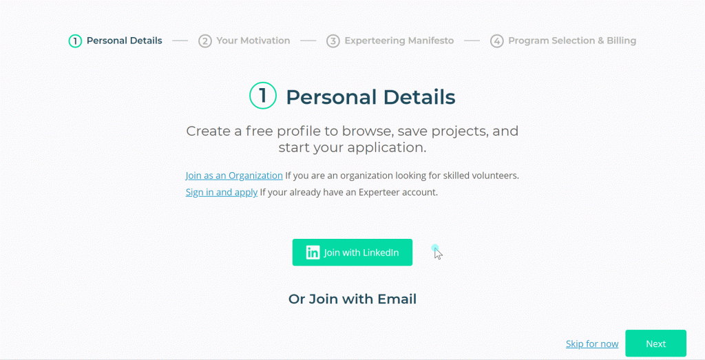To safeguard both the quality of our programs and to allow us to better understand your goals and motivations, we have moved to an application-based model. We're also raising the standards of our Experteering projects to ensure that projects you go on will be tackling root-cause issues.