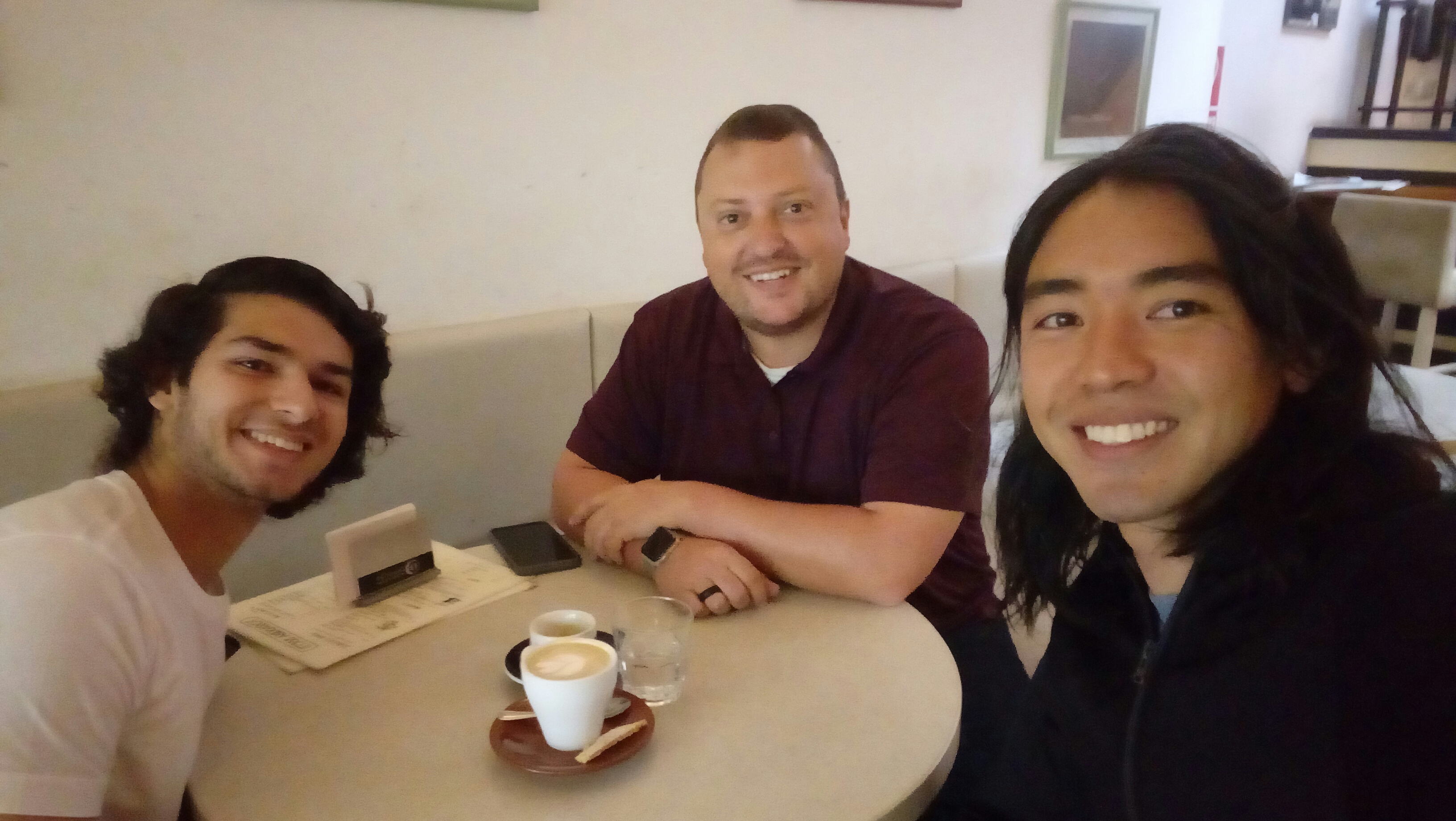Pepe, Varun, and Jeremy at a coffee shop tasting local coffee.[/caption]