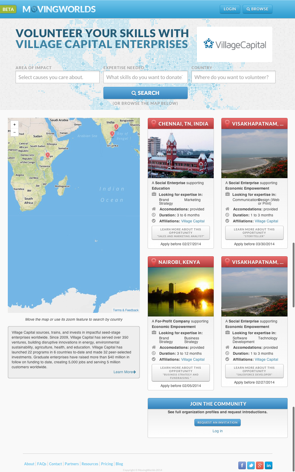 For this reason, we’re thrilled to announce our new partnership functionality on MovingWorlds.org with an amazing launch partner, Village Capital. We couldn’t be more excited about this partnership with one of the world’s most innovative impact investors: