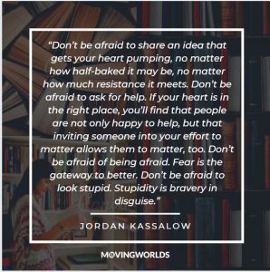 10. “Don’t be afraid to share an idea that gets your heart pumping, no matter how half-baked it may be, no matter how much resistance it meets. Don’t be afraid to ask for help. If your heart is in the right place, you’ll find that people are not only happy to help, but that inviting someone into your effort to matter allows them to matter, too. Don’t be afraid of being afraid. Fear is the gateway to better. Don’t be afraid to look stupid. Stupidity is bravery in disguise.” - Jordan Kassalow, Founder of VisionSpring
