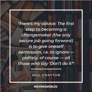 1. “Here’s my advice: The first step to becoming a changemaker (the only secure job going forward) is to give oneself permission, i.e. to ignore — politely, of course — all those who say 'Don’t do it’” ― Bill Drayton, social entrepreneurship pioneer & Founder of Ashoka