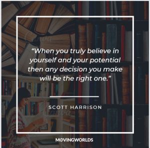 8. “When you truly believe in yourself and your potential then any decision you make will be the right one.” -Scott Harrison, Founder of charity: water