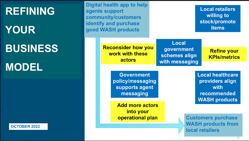 Think of this as an ongoing process rather than a one-time action. Continue to revisit how you get from “Point A” to “Point B” over time to ensure you aren’t missing any ecosystem actors that influence the change you’re working to inspire. This will widen the scope of your value chain and make it more connected to relevant actors. Remember to refine your key performance indicators (KPIs) as you add more actors to your operational plan so that you can keep measuring progress and uncovering new insights.