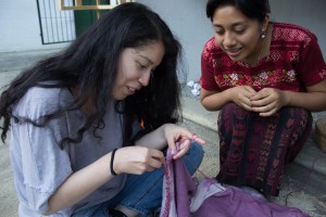 ‘Atitlan’ means "at the water" in the native language of Nahuatl. The lake is renowned as one of the most beautiful in the world, and is Guatemala's most important national and international tourist attraction, with a long history with foreign visitors. In 1934, Aldous Huxley already raved about the beauty of the lake one of his books. The region also has a turbulent history of violence and human rights abuses, and more recently is facing some serious environmental problems. Today, 95% of the population is indigenous, and most of them live in poverty; 29% in extreme poverty. During the week, we were graciously hosted by the Women of CONSORCIO. The cooperative has its office in Chukmuk, just outside the village of Santiago de Atitlan, including a workshop room, a kitchen, a vegetable garden and a sacred site for fire ceremonies.