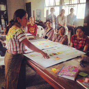 Under the inspiring and emphatic leadership of workshop facilitator Zachary Towne-Smith of Caracol Consulting, using the HAPI methodology that he developed during many years of facilitating intercultural workshops, we first looked at everything that CONSORCIO and the women had achieved so far. Together we listed all the good things, the opportunities and the risks they are facing. This participatory process lead us to the central objective for the collaboration: