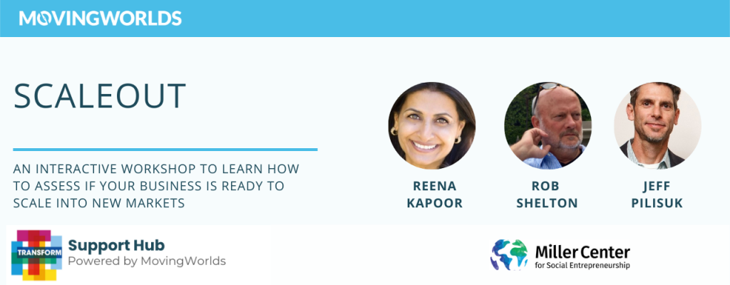On May 18th, the TRANSFORM Support Hub, powered by MovingWorlds, invited our friends at the Miller Center for Social Entrepreneurship to share how social enterprises can assess their readiness for scale through expansion into new markets.