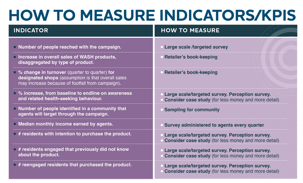The first step is to identify the key performance indicators for your most important metrics. They don't always have to be responsive to your “so-what” metrics, but they should act as a proxy that demonstrates your progress towards the change you’re trying to make. These "so-what" metrics measure change at a broader level, and can verify the social value you provide or the validity of your business model.