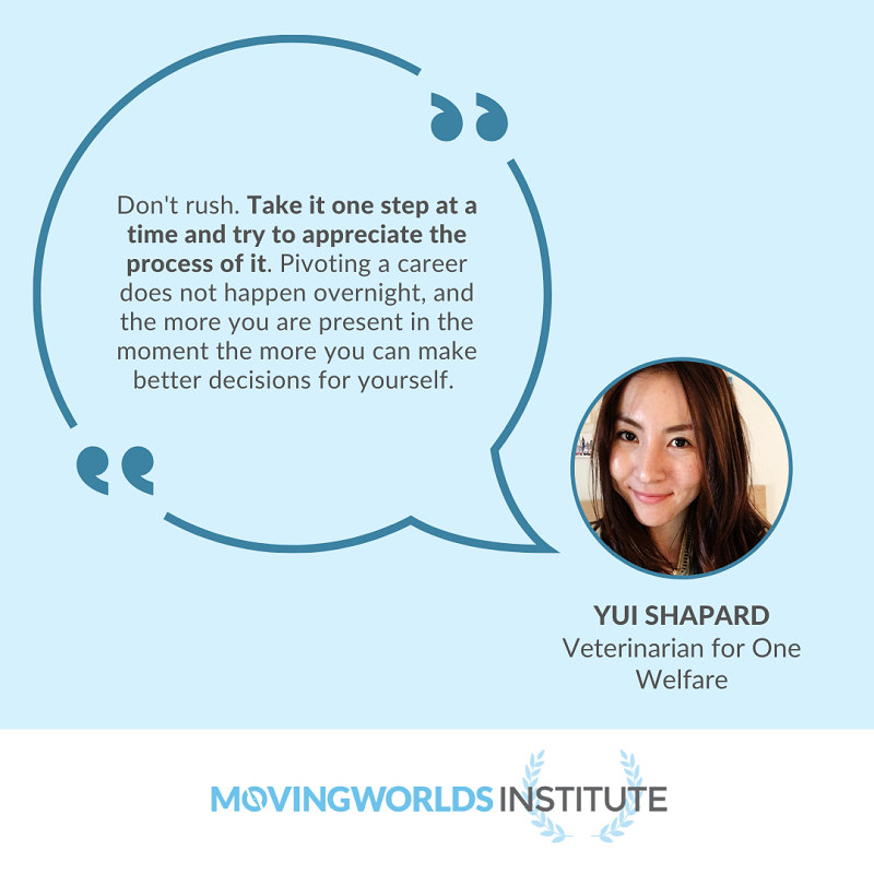 “Don't rush. Take it one step at a time and try to appreciate the process of it. Pivoting a career does not happen overnight, and the more you are present in the moment the more you can make better decisions for yourself. Also, remember to pause and take care of yourself -- go for walks, catch up with an old friend, do something that makes you extra happy whatever that may be.” - Yui Shapard