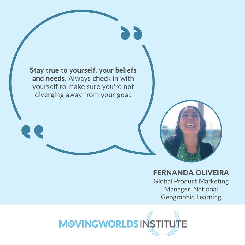 “Stay true to yourself, your beliefs and needs and always check in with yourself to make sure you´re not diverging away from your goal.” - Fernanda Oliveira