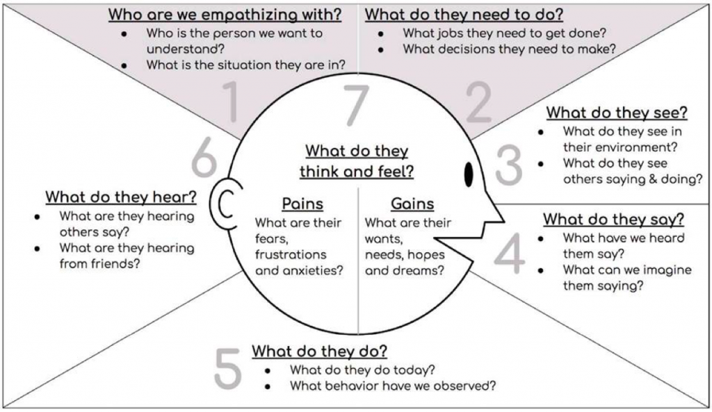 Once the right members are brought together, TVD provides training on frameworks that empower these local organizations to continue to innovate and create their own opportunities. One example of this is using human-centered design programming. Here is a photo of one of our sessions where we learned how to use the empathy map, and how it applies to our own businesses and communities. This map allows us to synthesize what we see and decode possible fears and aspirations of those around us, helping us to better serve our community’s needs.