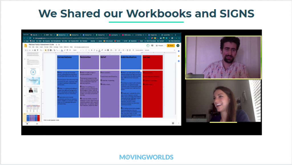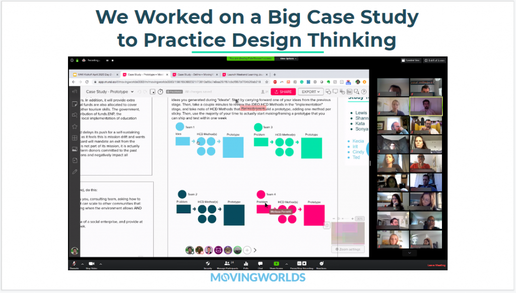 Live training: Using enhanced video and presentation technology to augment Zoom presentations. Providing individuals their own online journals to give space for reflection. Hosting a group virtual brainstorm and tracking ideas on a shared board to create interaction and get point in time feedback