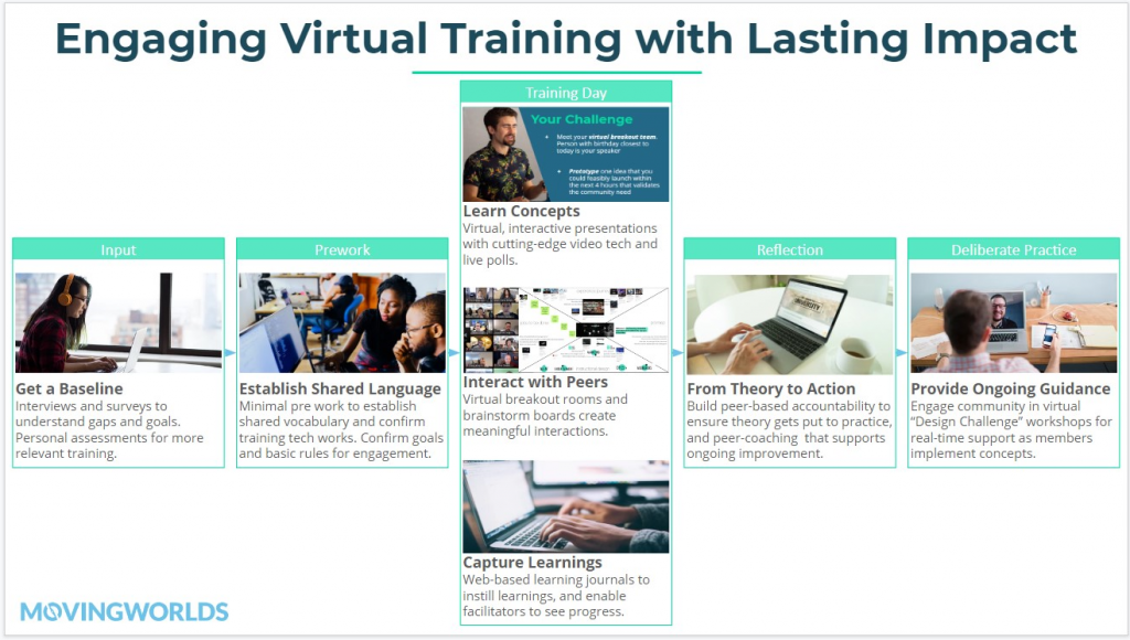 Virtual learning technology and communities are not a compromise or a back-up plan. As we've learned in operating global learning communities for social impact professionals, we have found that the right virtual platforms present opportunities to increase access, improve outcomes, and engage more diverse participants. As you move to virtual — whether that is coaching your peers, training your employees, or upskilling community members — we're sharing the lessons we've learned to help you make virtual training even better and more effective.