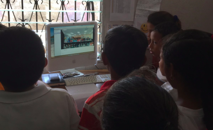 Global Communication: students in Nicaragua learn about their global partners in the US, talk about volcanos, sing songs, and learn they have a lot in common![/caption]