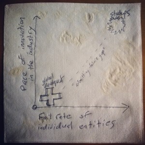 After more research which showed us that startups fail faster and more than any other industry, we found that there is an interesting correlation between the rate that individual tech startups fail and the amazing speed of innovation in the entire industry. This is almost opposite to the global development industry which sees a much lower rate of admitted failure, but also a much slower pace of innovation.