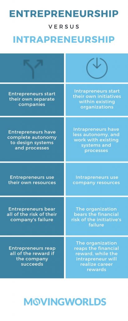 For a visual representation of the differences between social entrepreneurship and intrapreneurship, check out the infographic below:
