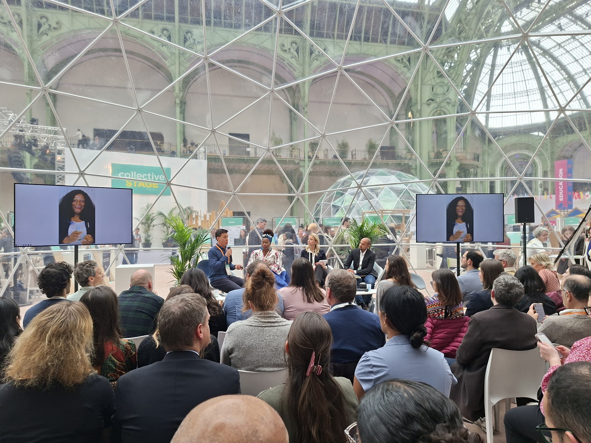 Last week at ChangeNow in Paris, the Crystal Bubble filled up for a session titled "Scaling AI for Good: The Role of the Private Sector in Accelerating Impact Startups." Corporate leaders from Microsoft and EY sat alongside social entrepreneur Moyo Asubiojo of EduTech, Sophia Otoo from the World Economic Forum's Schwab Foundation, and our team at MovingWorlds. The room was packed — standing room only — and the conversation was energetic.