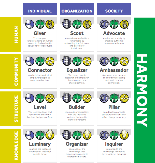 Check out the infographic below, which helps explain each of the different purpose types. I bet if you skim it, you will see one that resonates with you the most, or perhaps a few. But don’t be lured by a specific title or your initial impression. It takes time to learn about what your purpose profile really is, so make sure to also discuss this with others to get a more holistic view into which is most like you.